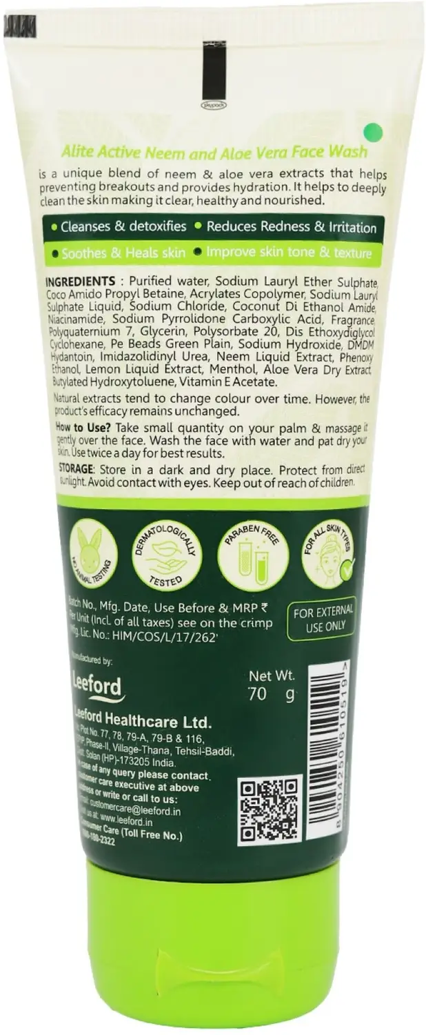 Alite Neem & Aloe Vera Face Wash is an herbal soap-free formulation designed to cleanse the skin while providing natural antibacterial protection. It is particularly effective for those with oily or acne-prone skin.