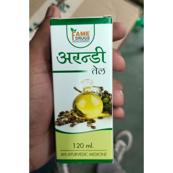 Arandi oil is a common name for castor oil, which is a vegetable oil derived from the seeds of the castor bean plant (Ricinus communis). It is a colorless or pale yellow liquid with a distinct taste and odor.