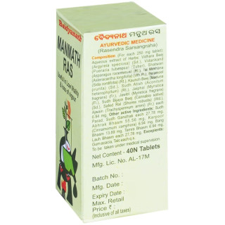 Baidyanath Manmath Ras is a potent Ayurvedic tablet (Ras Aushadhi) primarily used to improve male reproductive health, vitality, and stamina. It contains a blend of herbal ingredients and purified minerals, formulated to balance Vata and Pitta doshas.
