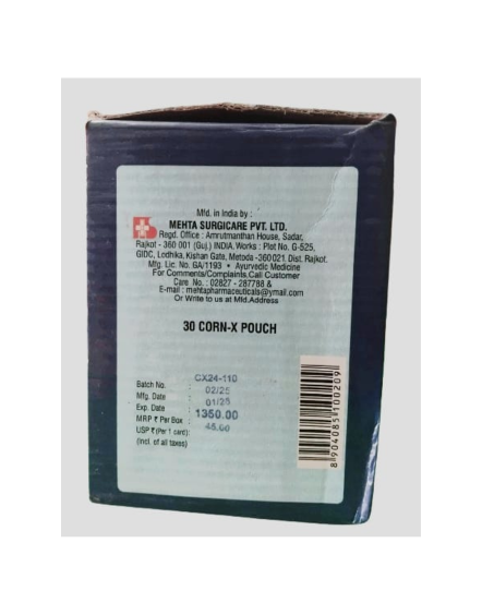 Active Ingredient: Most corn caps, including Corn-X, use Salicylic Acid (usually at a concentration of 40%).