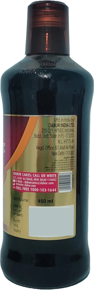 Dabur Amritarishta Syrup is used in the treatment of chronic fever, typhoid fever and other infectious diseases. It is a natural immunity booster and increases non-specific immunity. It helps the body to fight off bacterial as well as viral infections. Amritarishta is also beneficial for patients suffering from gout or elevated uric acid level, rheumatoid arthritis, poor appetite and hepatitis (jaundice)