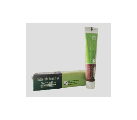 Germodine First Aid Antiseptic Ointment is a topical medication primarily used to prevent infection in minor cuts, scrapes, and burns. It typically contains Povidone-Iodine as the active ingredient, which works by releasing iodine to kill a broad spectrum of bacteria, fungi, and viruses.