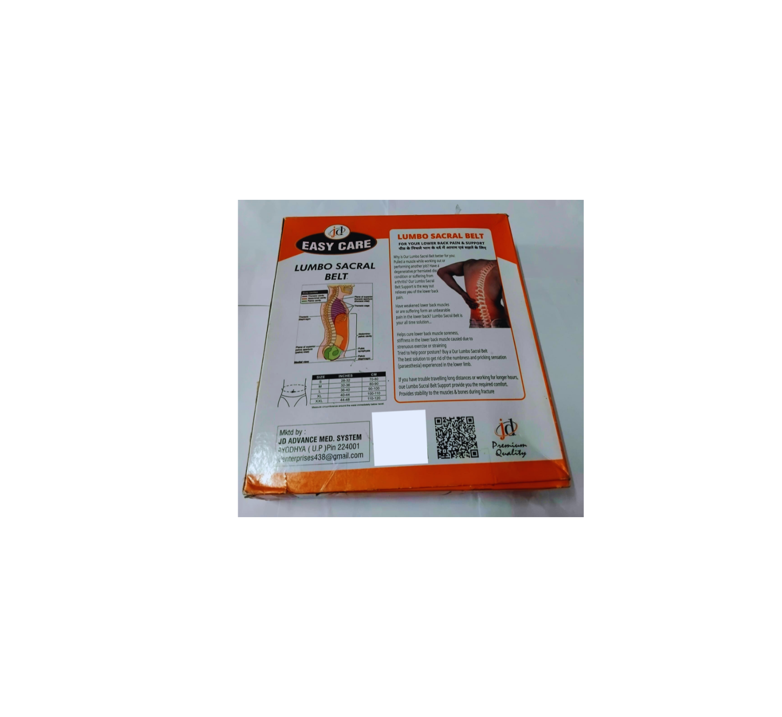 The JD EASY CARE Lumbo Sacral Belt is designed to provide support, stability, and pain relief for the lower back (lumbar and sacral region).