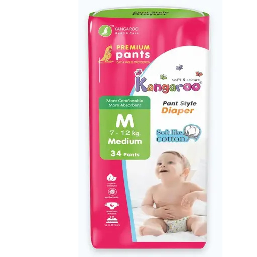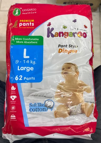 - Availability: Kangaroo pant-style diapers are available in various sizes, including Small, Medium, Large, and Extra-Large, to fit different stages of a baby’s growth. They are also sold in different pack sizes.
