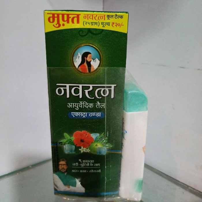 Navratna Ayurvedic Oil is a popular hair and body oil known for its cooling and therapeutic properties. It is a blend of nine Ayurvedic herbs and is often used for massage.