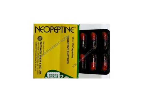 - Supports Digestion: Neopeptine capsules may help improve digestion by promoting the breakdown of carbohydrates, proteins and fats, contributing to efficient nutrient absorption. Its balanced enzyme formulation might assist in accelerating the digestion process, leading to reduced digestive discomfort after meals.
