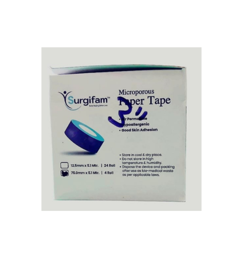 Surgifam Microporous Paper Tape is a medical-grade adhesive tape designed for securing dressings and devices to the skin, particularly for patients with sensitive or fragile skin. It is widely used in clinical settings and home first aid for its “breathable” qualities.