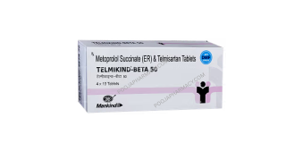 Telmikind Beta 50 Tablet is a combination of two blood pressure-lowering medicines: Telmisartan and Metoprolol. Telmisartan belongs to the class of drugs called Angiotensin II receptor antagonists. It works by blocking the angiotensin II receptor, thereby relaxing the blood vessels and lowering the blood pressure. Metoprolol belongs to the class of drugs known as Beta-blockers. It helps to reduce blood pressure by allowing the blood to flow more smoothly. Together, Telmikind Beta 50 Tablet helps in lowering blood pressure to normal.