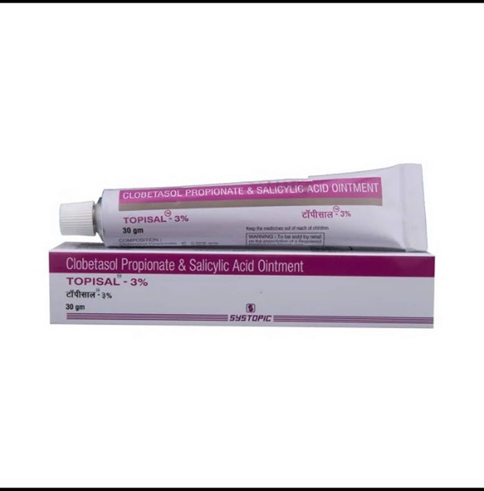 Topisal-3% Ointment is a combination medication primarily used to treat skin conditions characterized by scaling, crusting, or excessive thickening of the skin, such as psoriasis and seborrheic dermatitis.