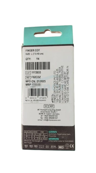 The Tynor Finger Cot (F-02) is a specialized orthopedic support designed to protect, stabilize, and immobilize the finger (phalanges). It is commonly used for individuals recovering from fractures, burns, surgeries, or ligament injuries.