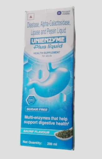 Unienzyme Plus Liquid is a comprehensive digestive aid formulated to improve digestion and relieve symptoms associated with indigestion, bloating, and gas. It is often used to support the breakdown of complex nutrients into simpler forms that the body can easily absorb.